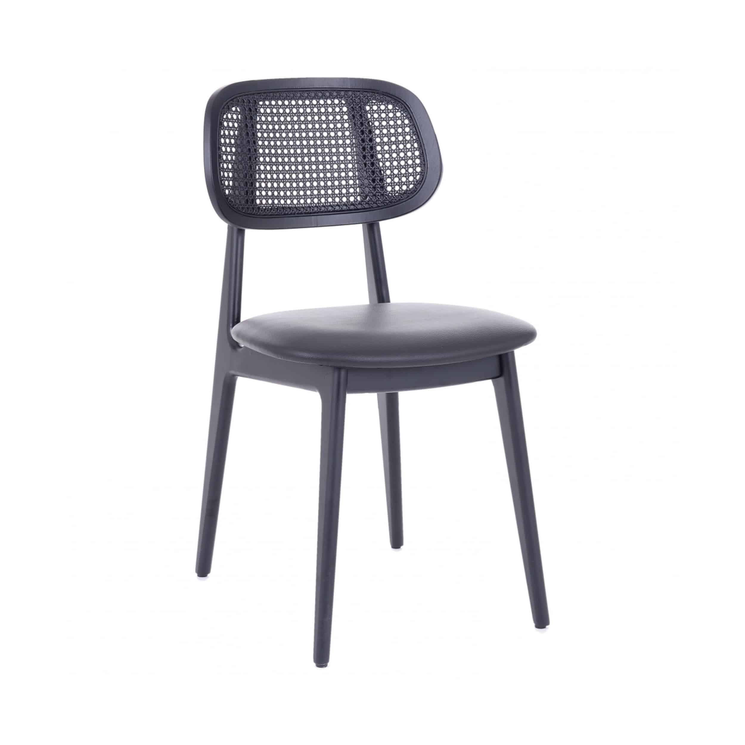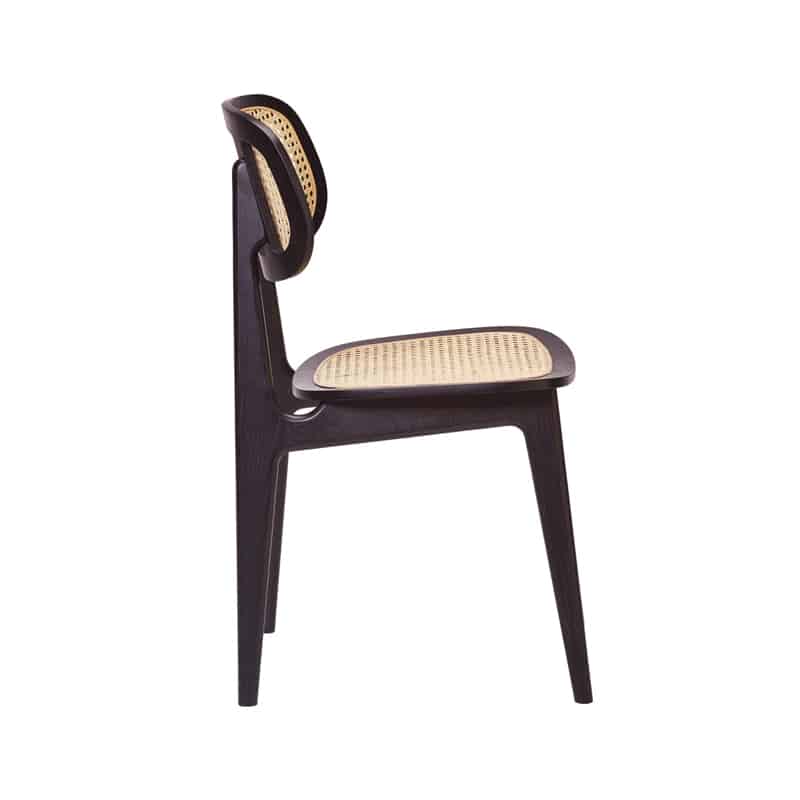 De stoel Benet SS heeft als belangrijkste elementen de geweven rotan zitting en rugleuning, genaamd 'webbing'.