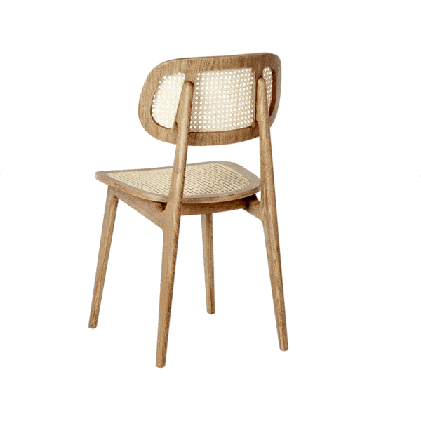 Het gevlochten riet in de rugleuning is duurzaam en het frame kan gemaakt worden van zowel hoogwaardig eiken- als berkenhout.