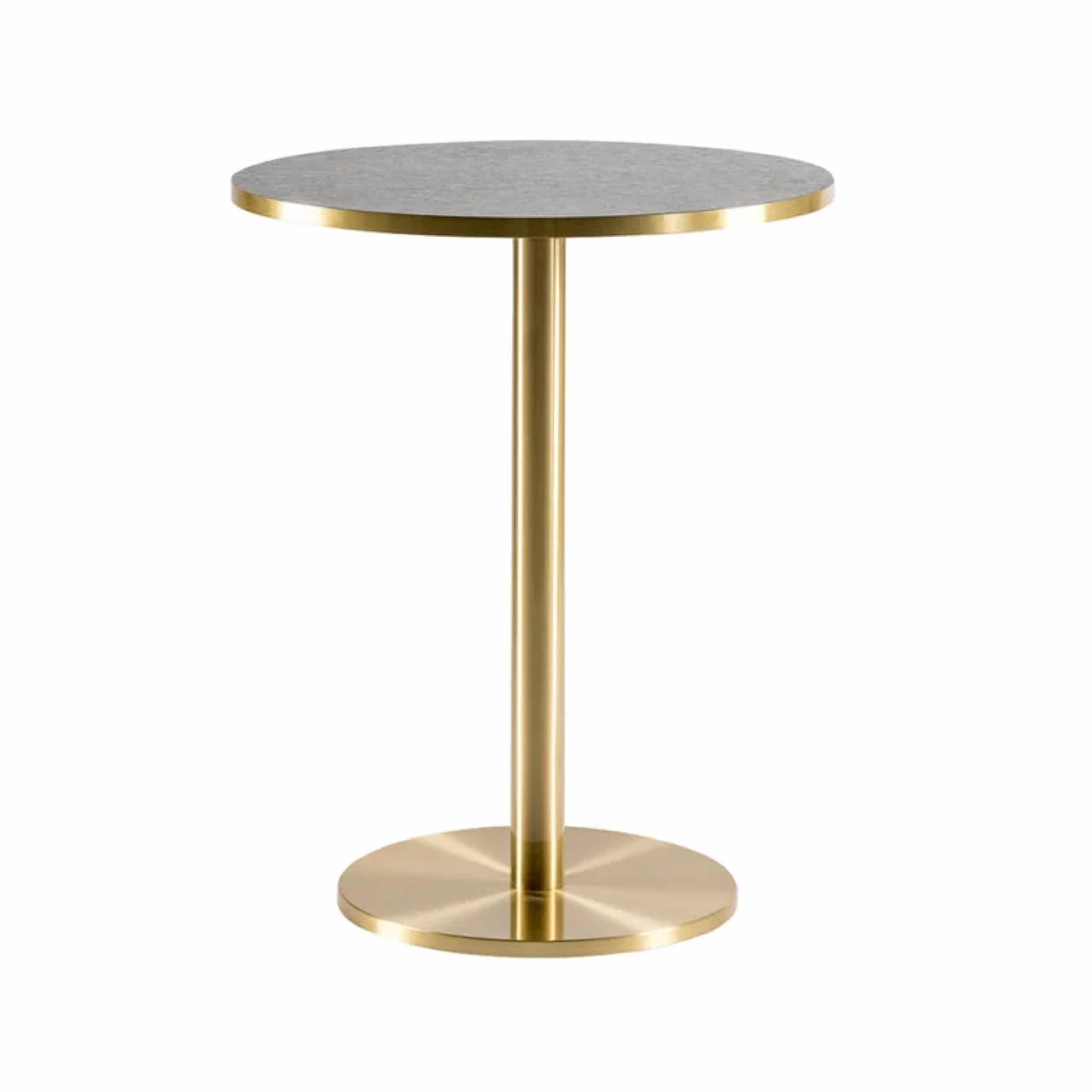 Brett in het goud is een onderstel met een diameter voet van 41 cm. De luxe uitstraling van het onderstel is mooi om te combineren met tafelbladen met een natuursteen look met een messing rand.
