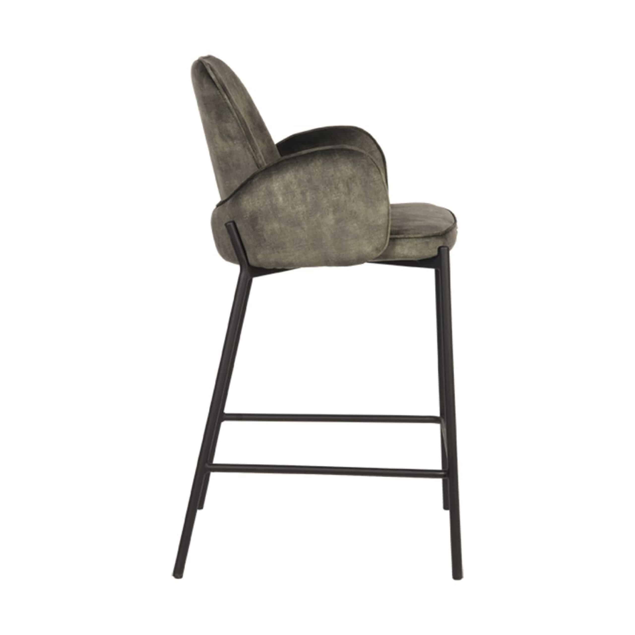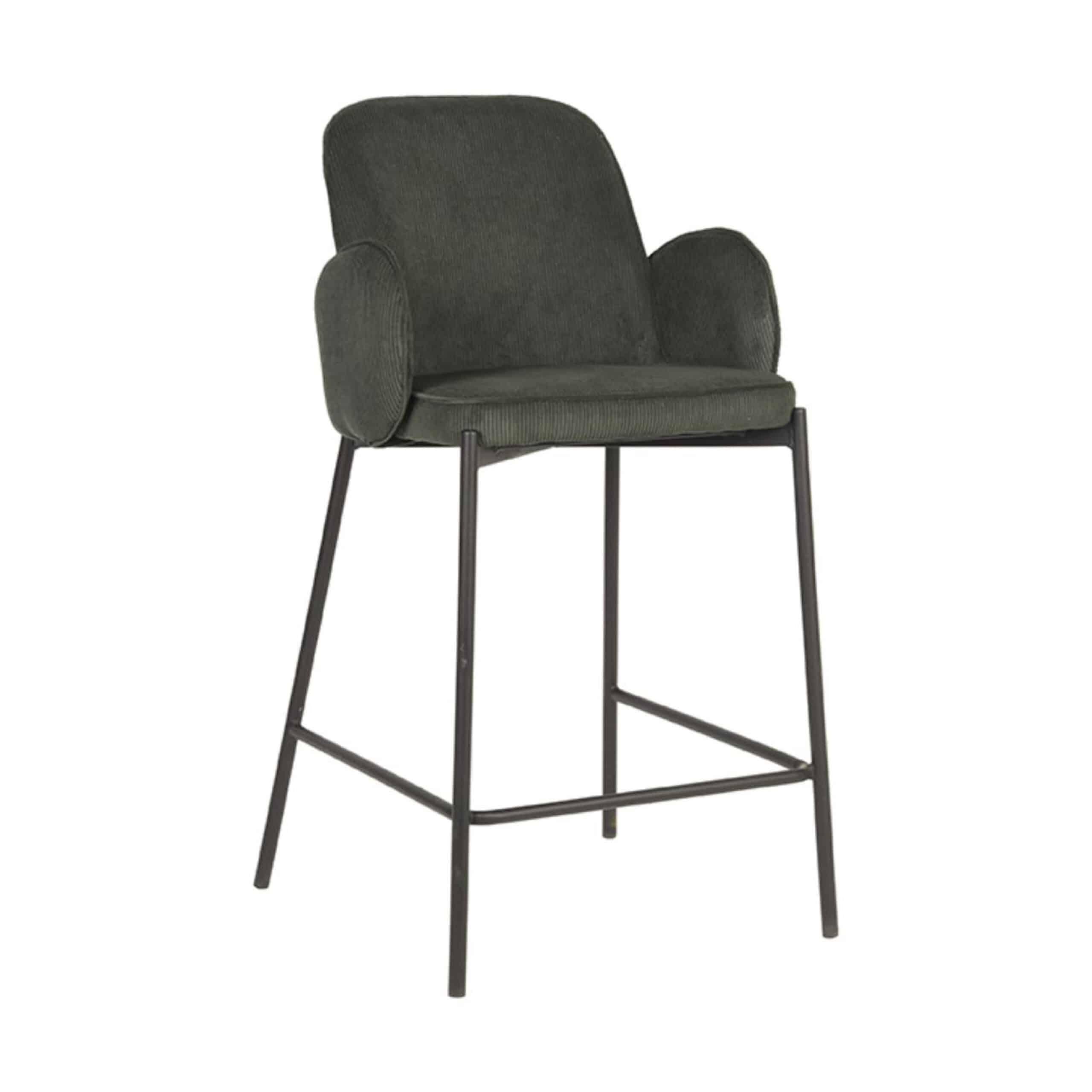 Barstoel Youri heeft net als de gewone stoel meerdere mogelijkheden voor de stoffering. Er is keuze uit velours, microvezel, weave en ribcord in meerdere kleuren.